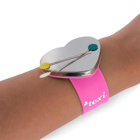 Bransoletka magnetyczna TEXI LOVE PINK zwiększa komfort pracy, pozwalając mieć najpotrzebniejsze drobne elementy zawsze pod ręką — a właściwie na ręce. Specjalna magnetyczna płytka w kształcie serca skutecznie przytrzymuje metalowe akcesoria, takie jak: szpilki, igły, agrafki czy śrubki.