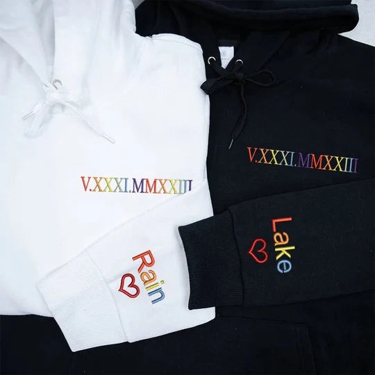 Bluza/Koszulka dla par Serca z haftowanymi inicjałami i datą