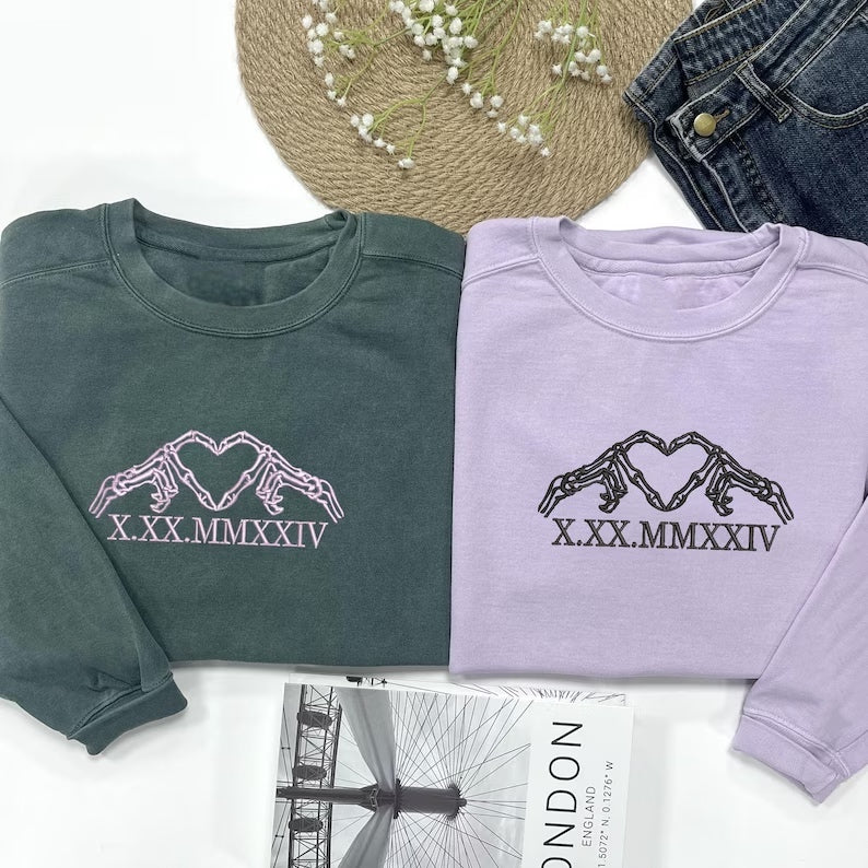 Bluza/Koszulka z haftowaną datą rzymską oraz inicjałami dla niej i dla niego