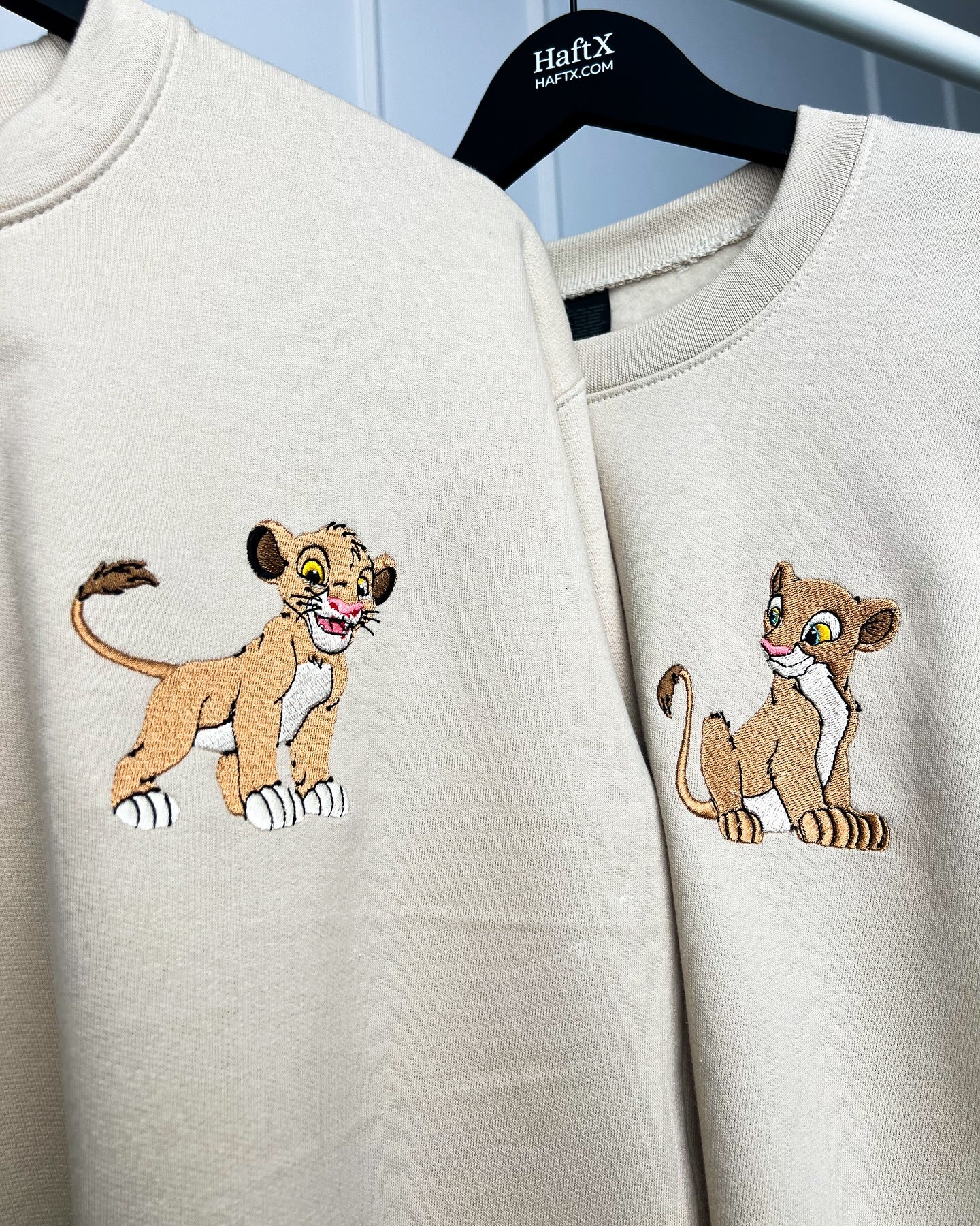 Bluza/Koszulka dla par z haftem «Król Lew Simba & Nala»