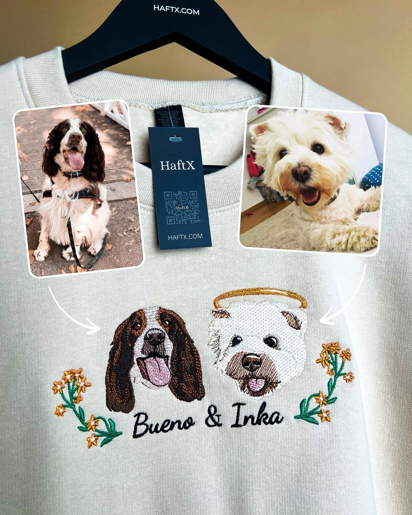 Bluza/Koszulka z haftowanym wizerunkiem twojego pupila w wieńcu – haft ze zdjęcia pupila