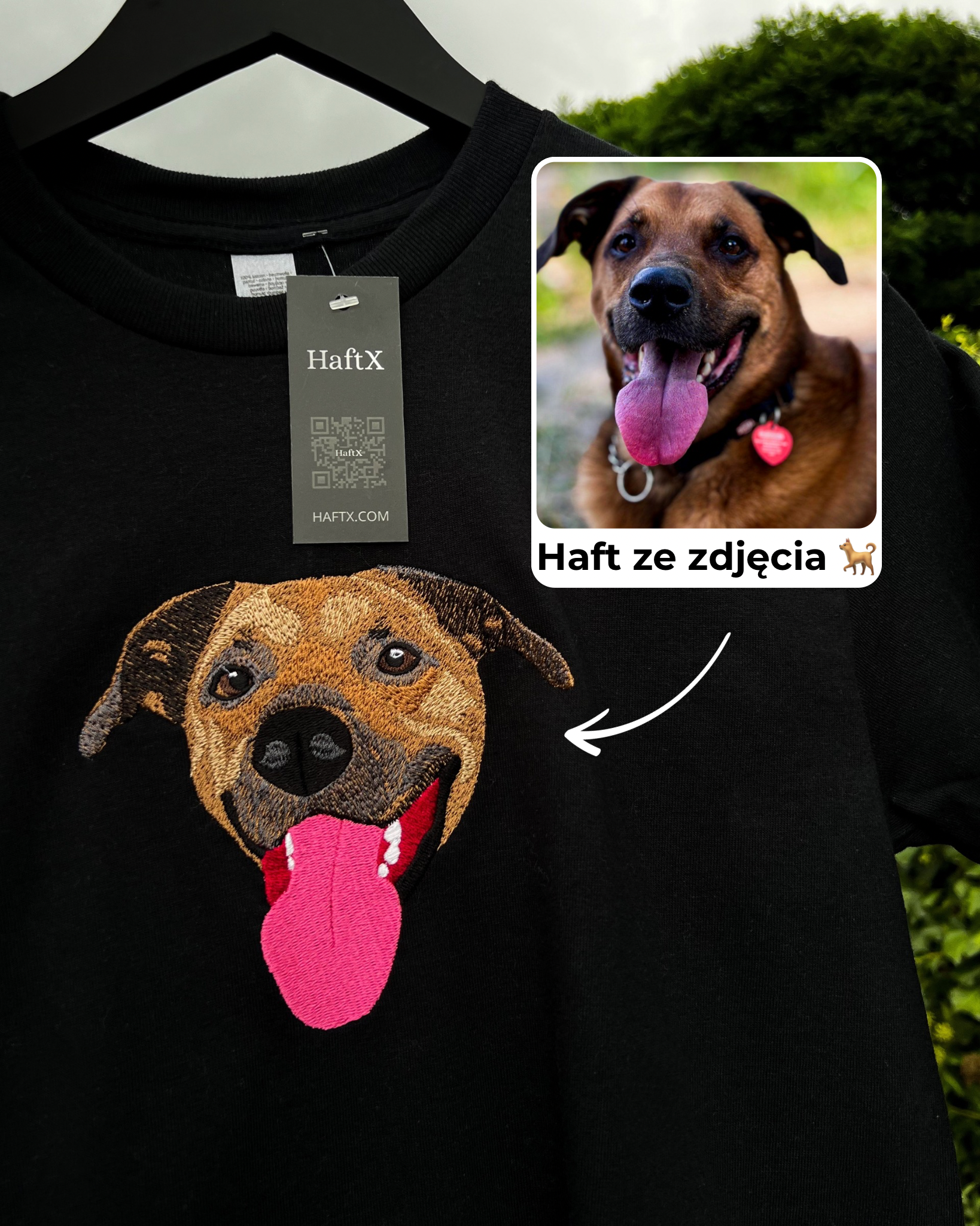 Bluza/Koszulka z podobizną twojego pupila – haft ze zdjęcia pupila