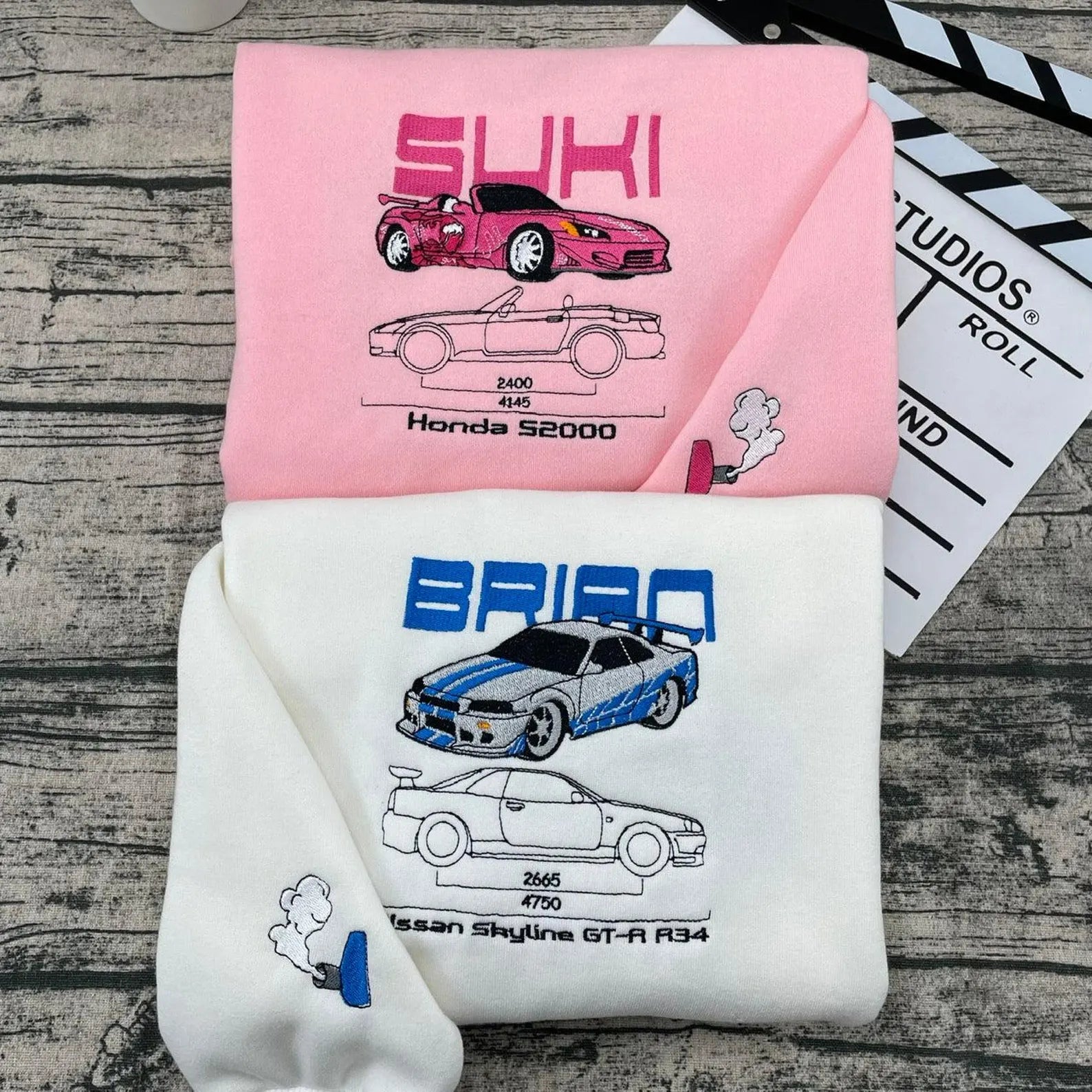 Podkreślcie swoją więź i miłość do motoryzacji dzięki haftowanej bluzie lub koszulce dla par „Brian & Suki”! Ta odzież inspirowana jest ikonami z serii filmów „Szybcy i wściekli” (Fast & Furious), przedstawiając Brian'a O'Connera i Suki – dwie postacie, które symbolizują szybkość, pasję i nieustępliwość.