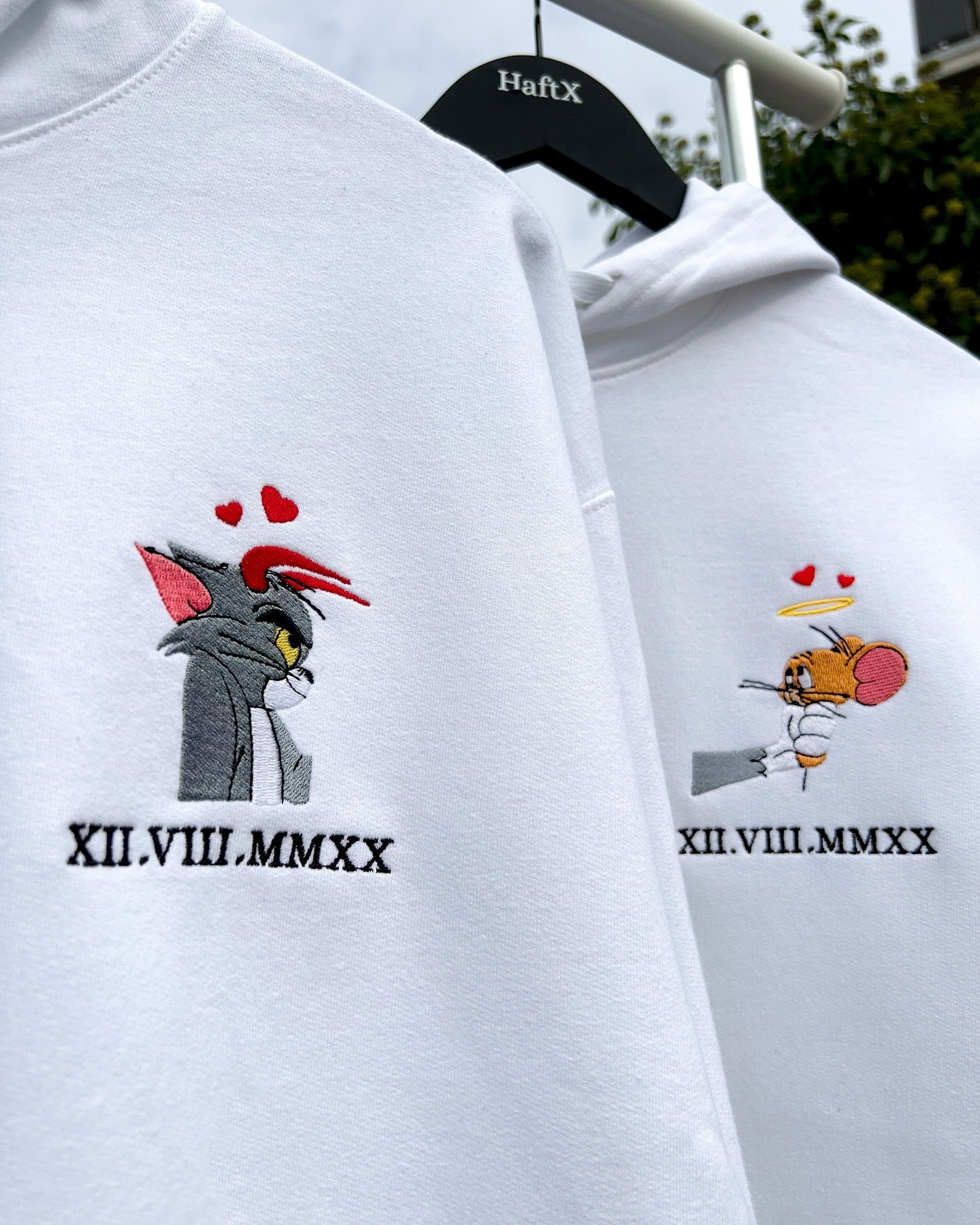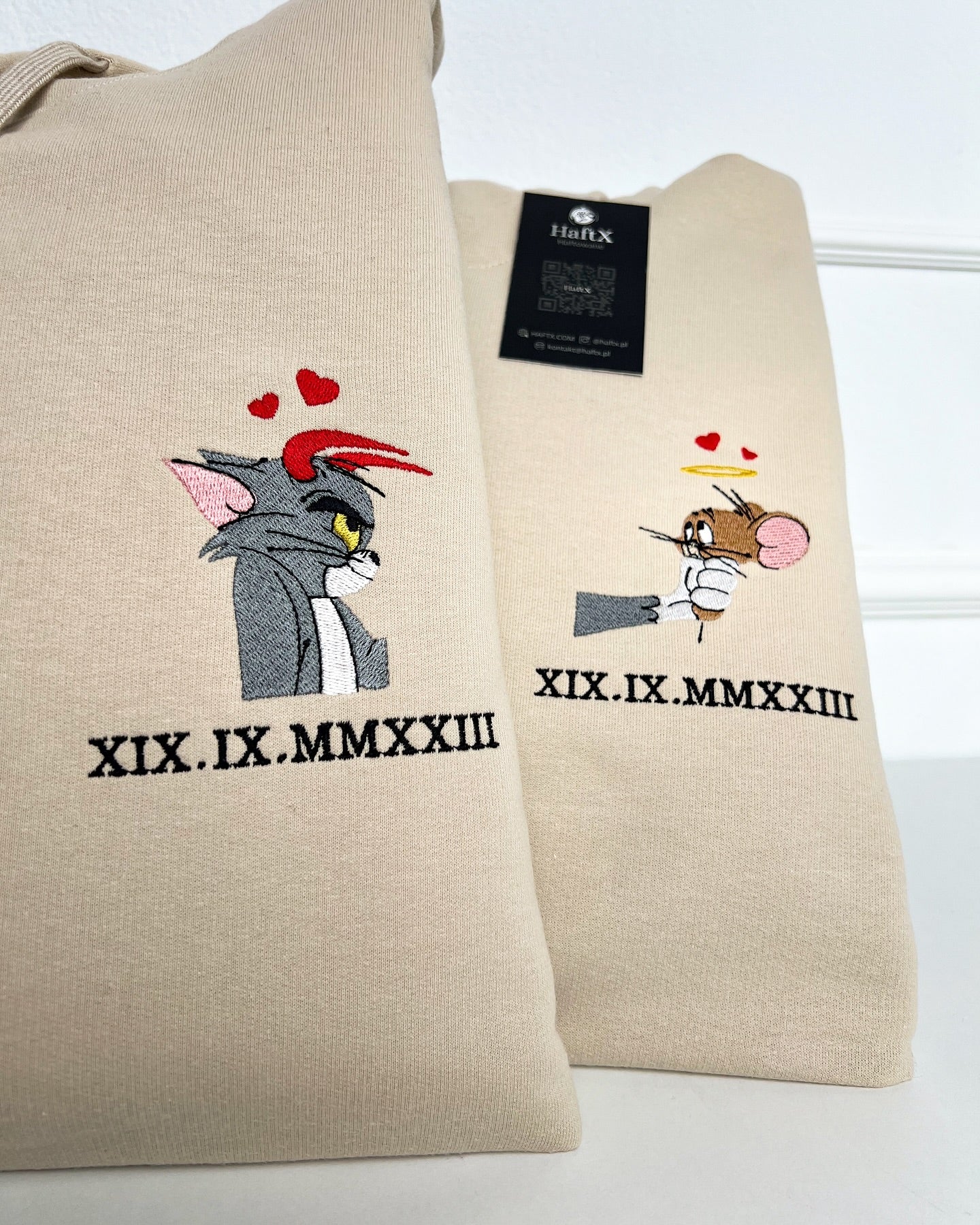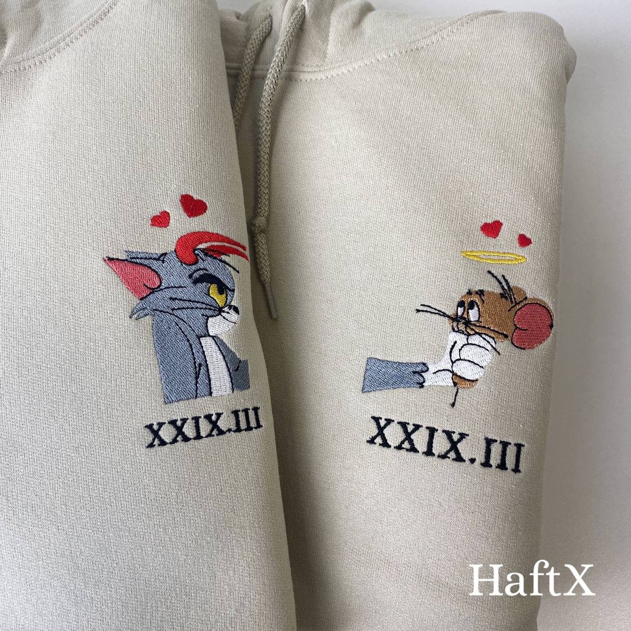 Haftowana Bluza/Koszulka dla pary "Tom & Jerry" z datą rzymską