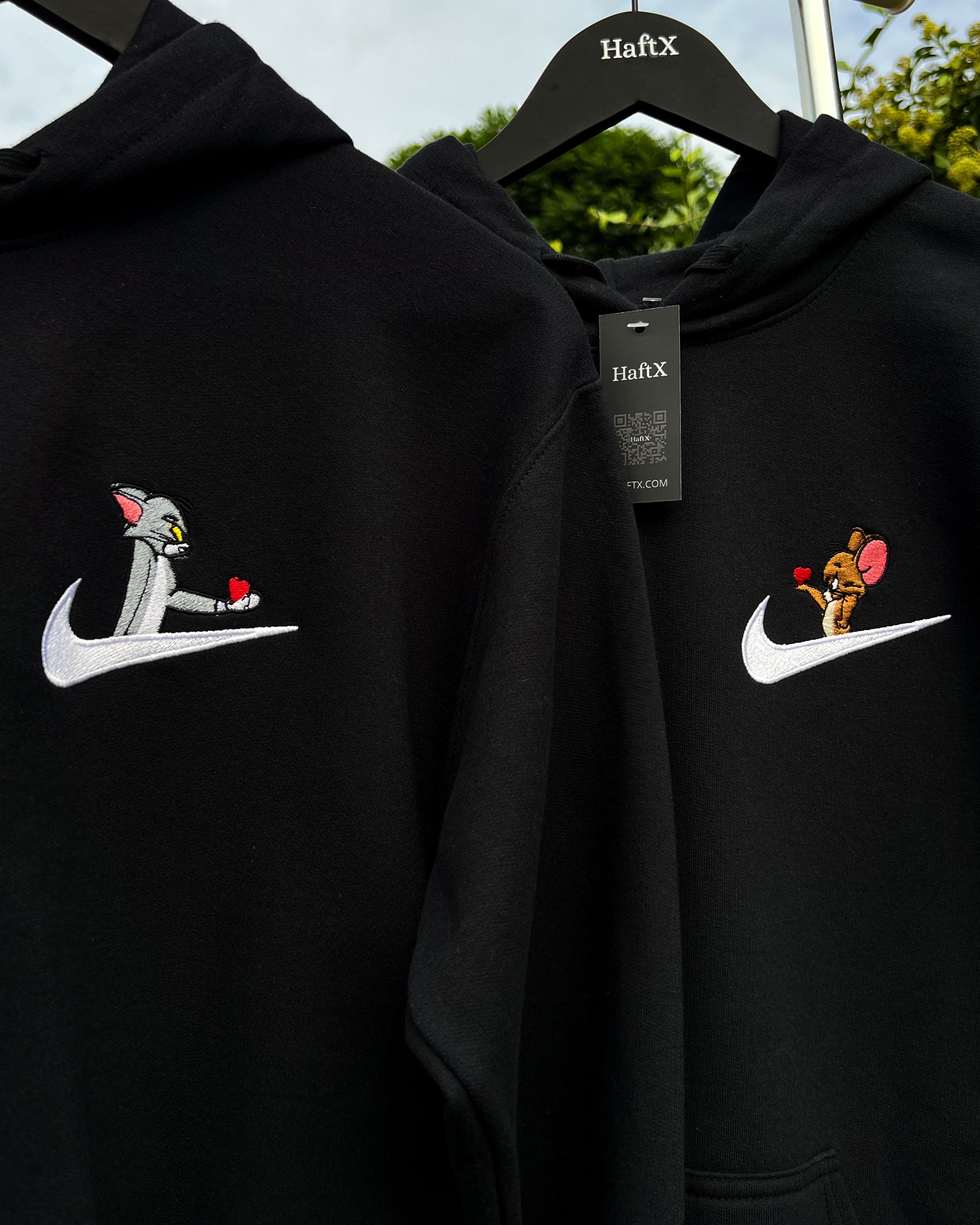 Podaruj coś naprawdę wyjątkowego! Nasza haftowana bluza lub koszulka dla par z motywem "Tom & Jerry" z logo to doskonały sposób na wyrażenie miłości i bliskości. Wykonana z najwyższej jakości materiałów, zapewnia komfort noszenia. Unikalny i personalizowany prezent, który zachwyci każdą parę.