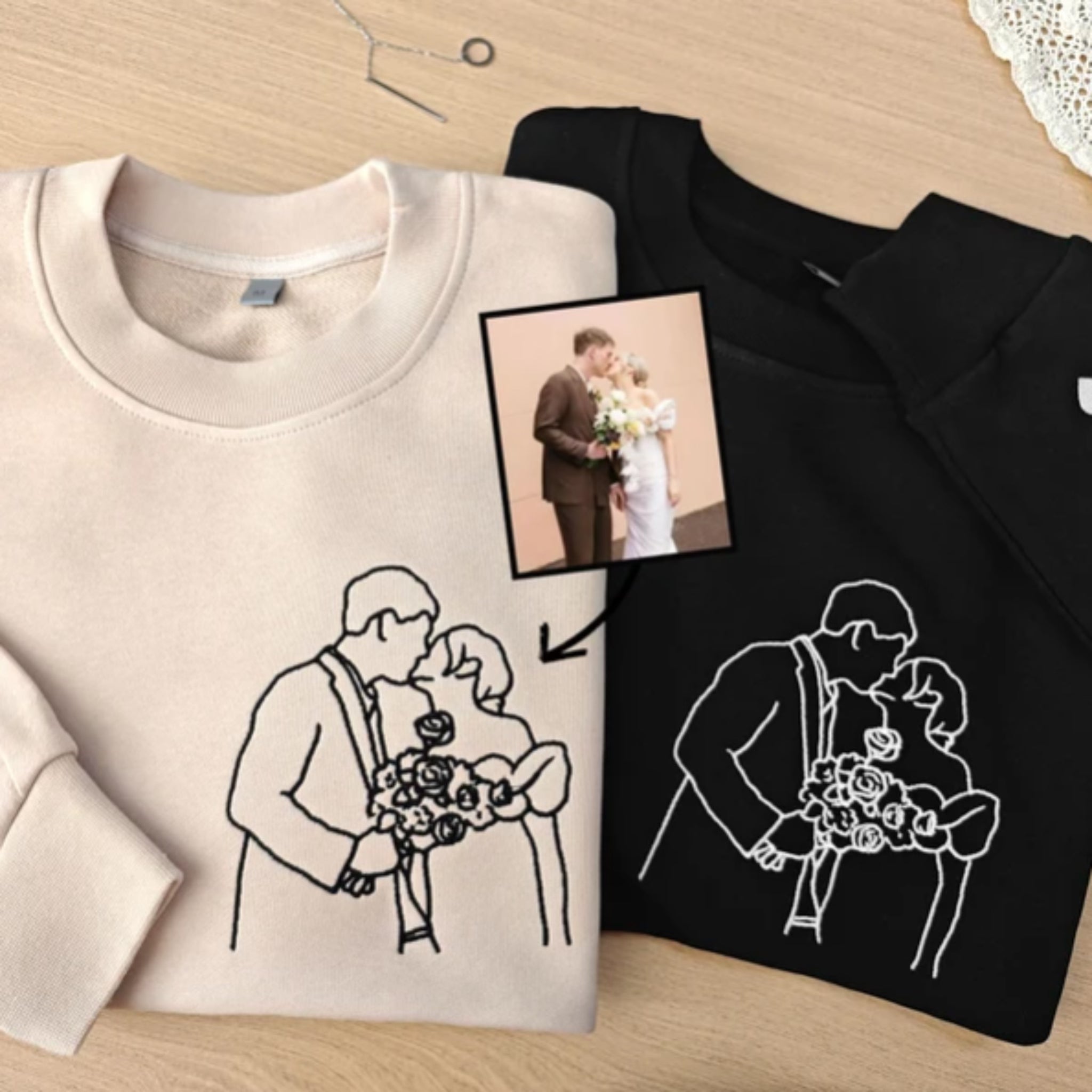 Podaruj coś naprawdę wyjątkowego! Nasza haftowana bluza lub koszulka z lineartem stworzonym na podstawie Twojego zdjęcia to doskonały sposób na wyrażenie osobistego stylu i zachowanie pięknych wspomnień. Wykonana z najwyższej jakości materiałów, zapewnia komfort noszenia. Unikalny i personalizowany prezent, który zachwyci każdego.