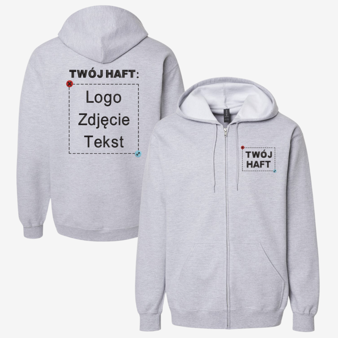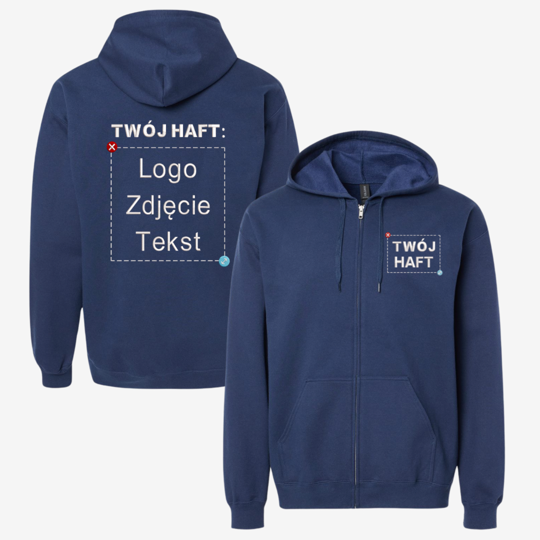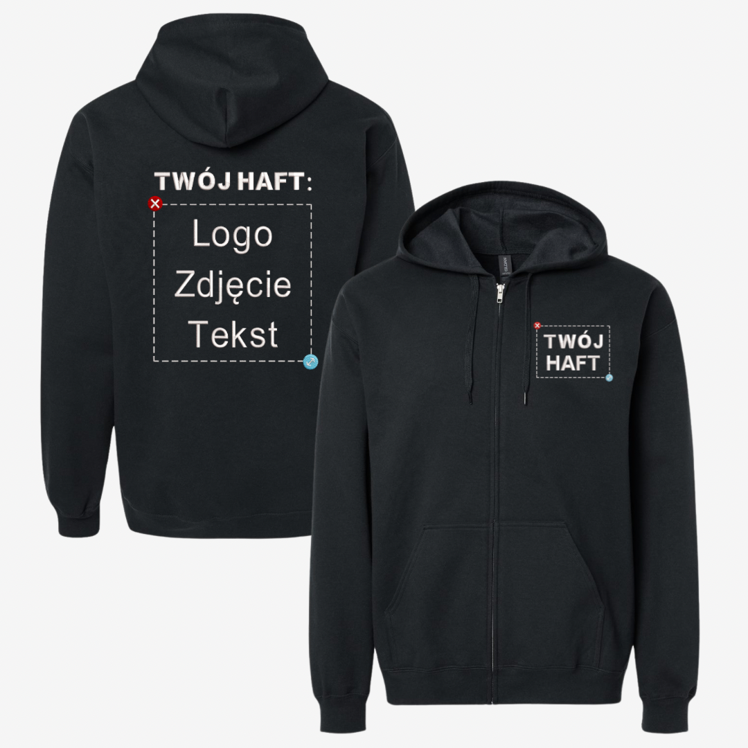 Bluza z Kapturem na zamek UNISEX z Twoim haftem (Logo/Zdjęcie/Tekst) Basic