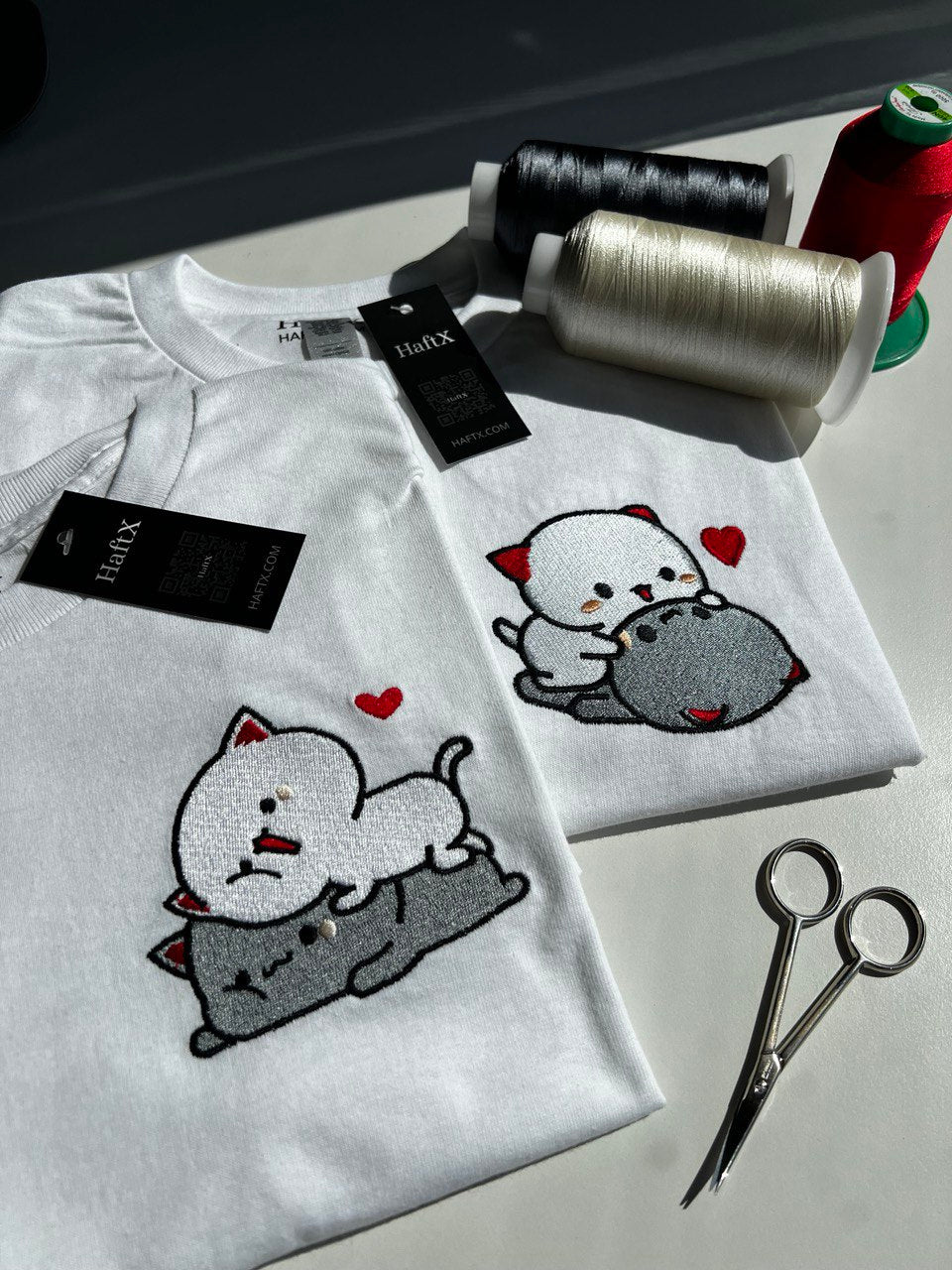Bluza/Koszulka dla par z haftem «Mochi Cat - Przytulne Noce»