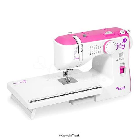 TEXI JOY 13 PINK + EXTENSION TABLE to automatyczna, wieloczynnościowa maszyna do szycia domowego z serii ENJOY YOUR COLOR, dostępna w zestawie ze stolikiem powiększającym pole pracy. Model ten jest szczególnie polecany do nauki szycia oraz dla osób rozpoczynających swoją przygodę z krawiectwem.