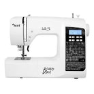 Maszyna oferuje szeroki wybór ściegów — od prostych i zygzakowych, przez ściegi owerlokowe i ozdobne, aż po rozbudowane programy automatycznego obszywania dziurek. Czytelny wyświetlacz LCD, elektroniczna regulacja prędkości oraz funkcja szycia bez użycia pedału (Start/Stop) zapewniają wysoki komfort i precyzję pracy.
