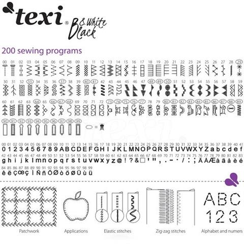 TEXI BLACK&WHITE to nowoczesna, wieloczynnościowa maszyna do szycia sterowana komputerowo, wyposażona w 200 programów szycia oraz zestaw funkcji ułatwiających codzienną pracę. Doskonale sprawdzi się zarówno w rękach doświadczonych użytkowników, jak i osób rozpoczynających swoją przygodę z szyciem.