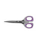Powierzchnia ostrzy utwardzona tytanem. Ostry szlif umożliwia łatwe i precyzyjne krojenie materiału. Miękkie, antypoślizgowe uchwyty dają komfort podczas wielogodzinnej pracy. Lekkość i ergonomia nożyczek wspomagają płynność cięcia.