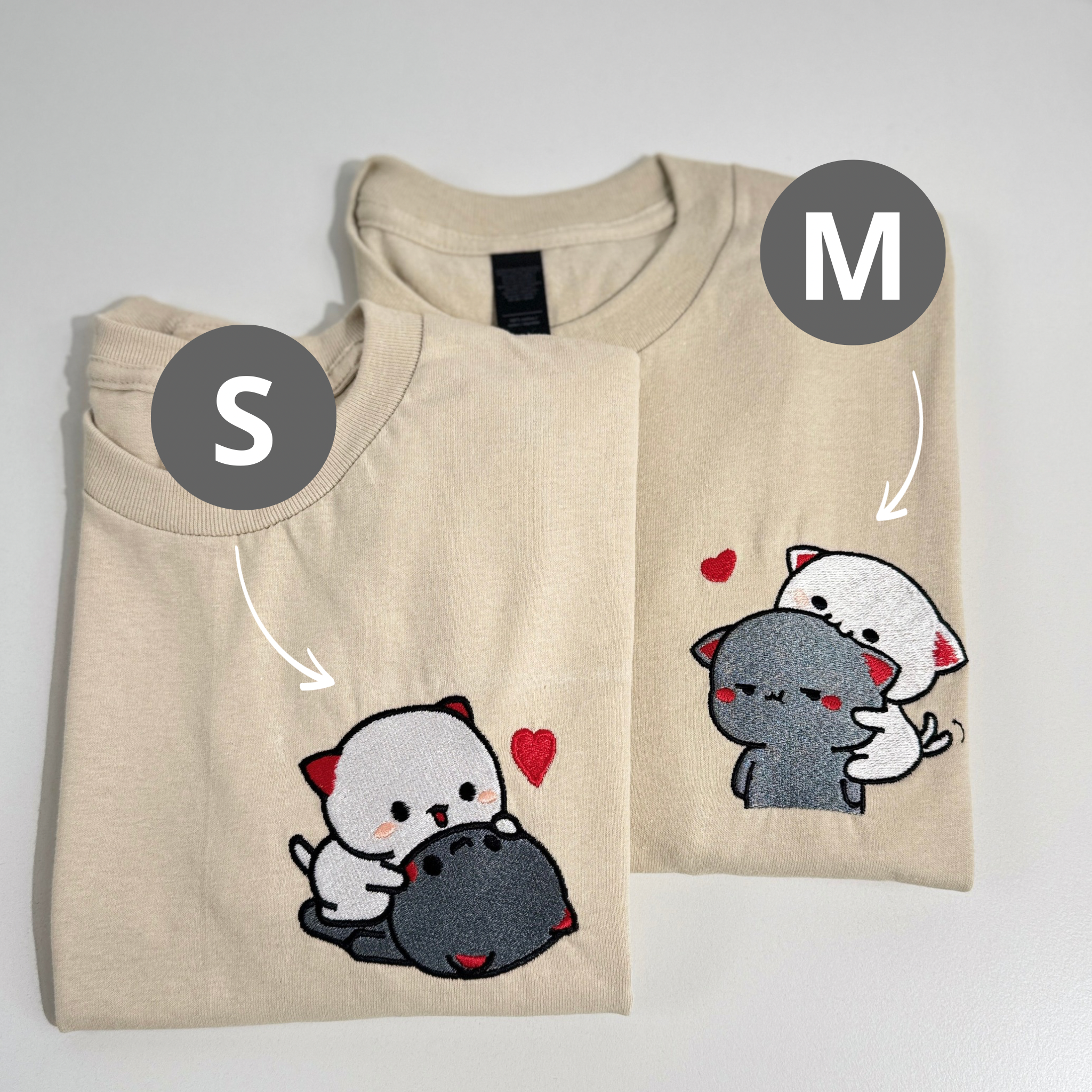 Koszulka (S, M) dla par z haftem «Mochi Cat» - w magazynie