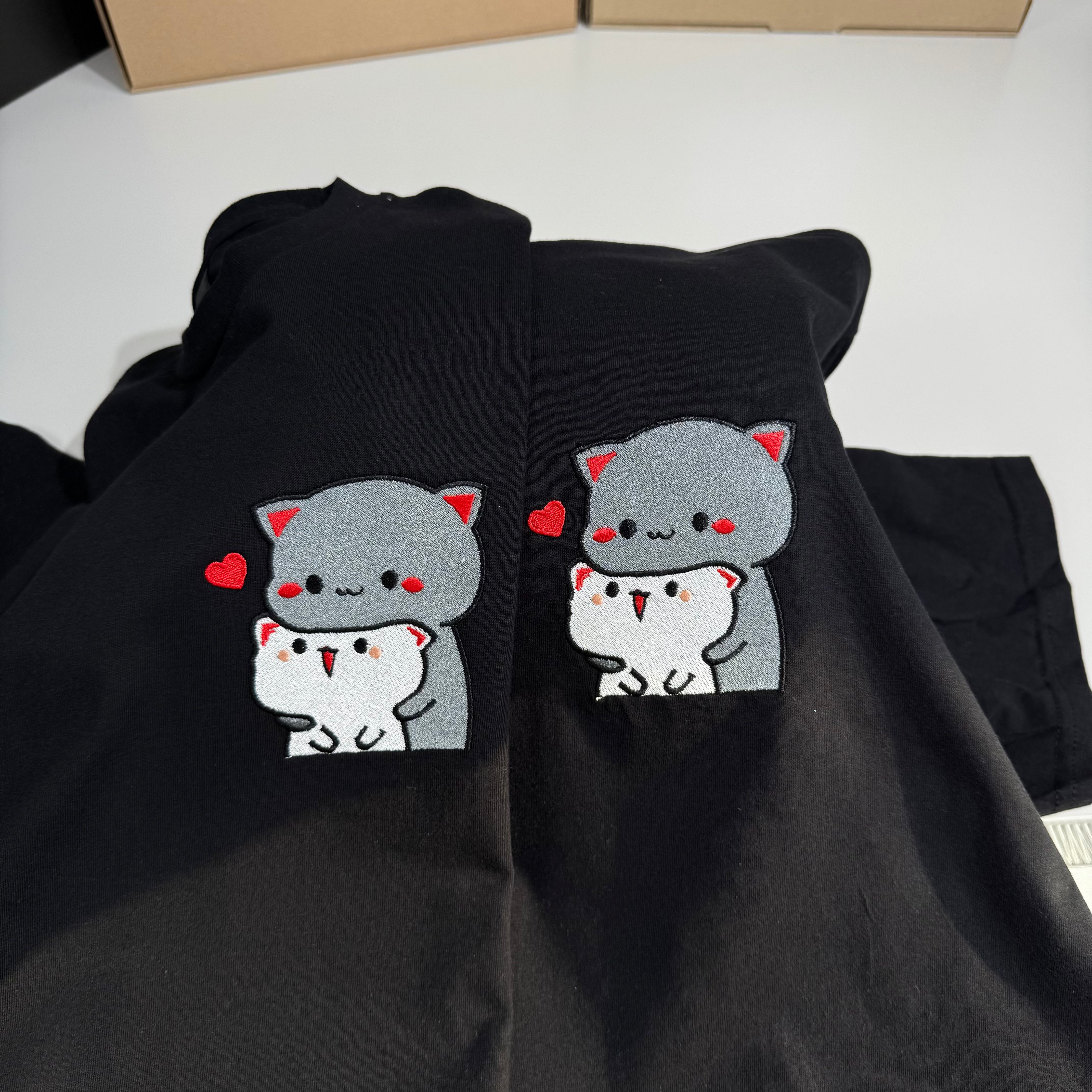 Koszulka (XL,S) dla par z haftem «Mochi Cat» - w magazynie