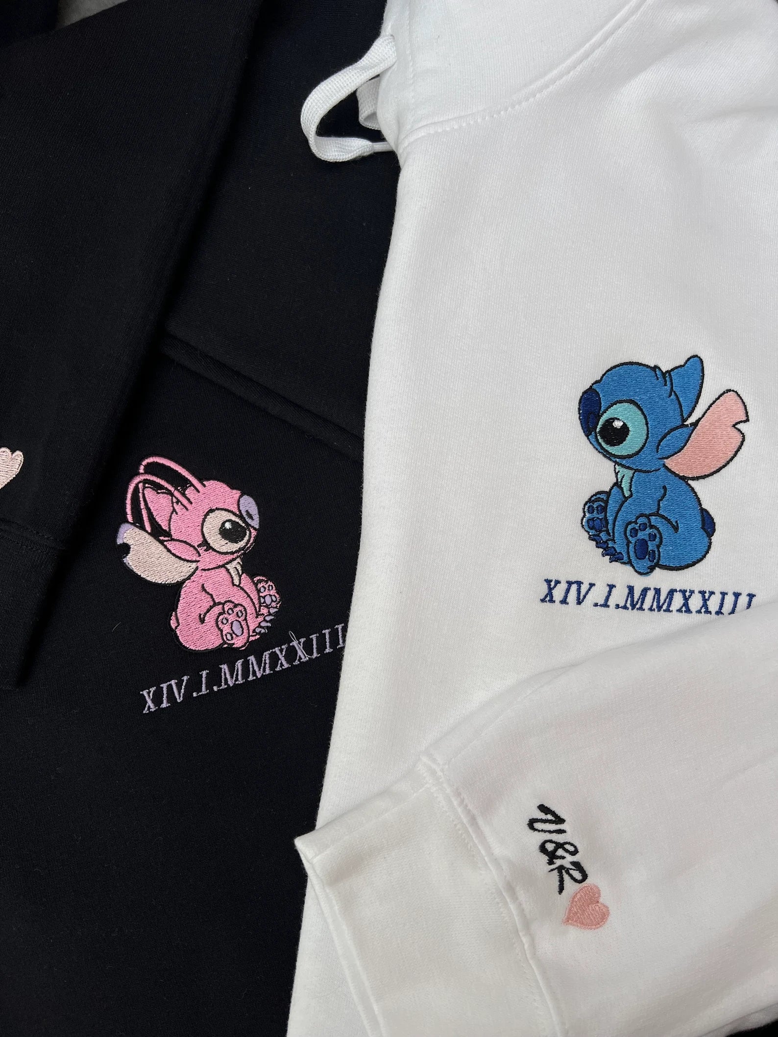 Bluza/Koszulka dla par z haftem «STITCH & ANGEL» z datą rzymską