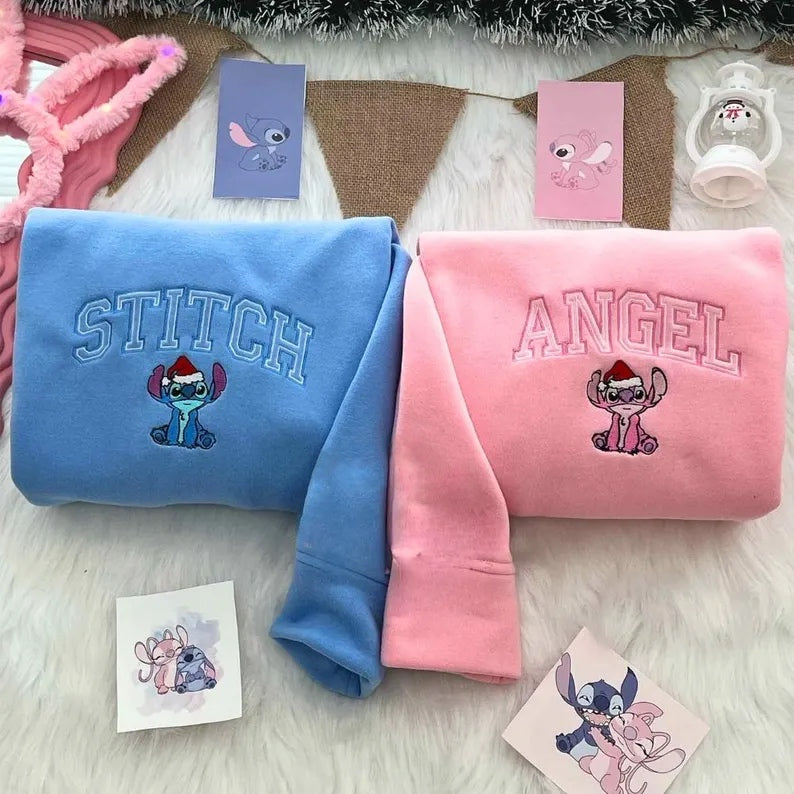 Bluza/Koszulka z haftem dla par Stitch & Angel na Święta