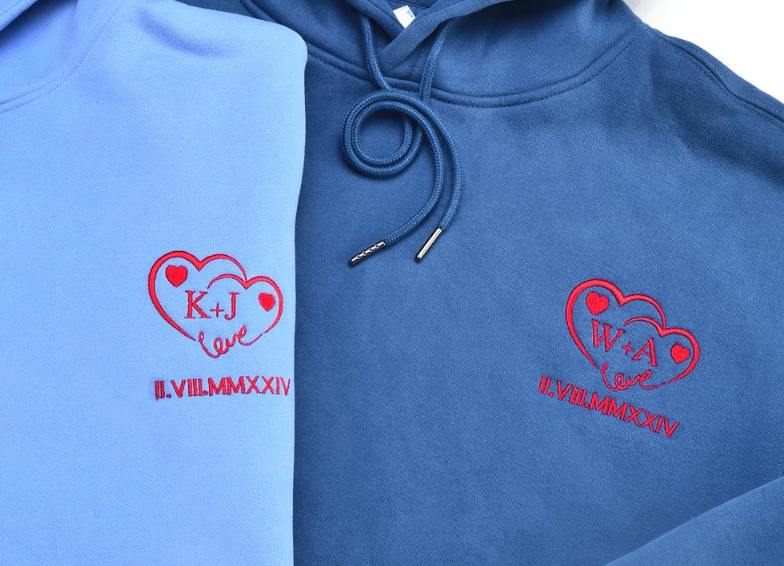 Bluza/Koszulka dla par Serca z haftowanymi inicjałami i datą