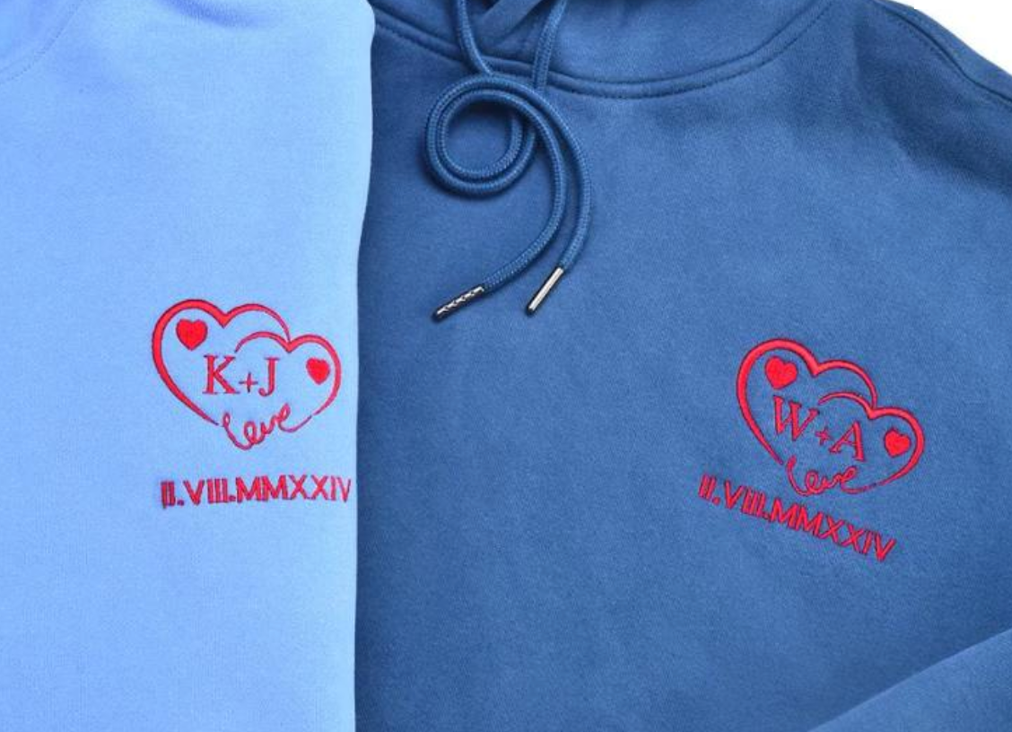 Personalizowana Bluza/Koszulka (unisex) «Love» z haftem inicjałów, daty i serca
