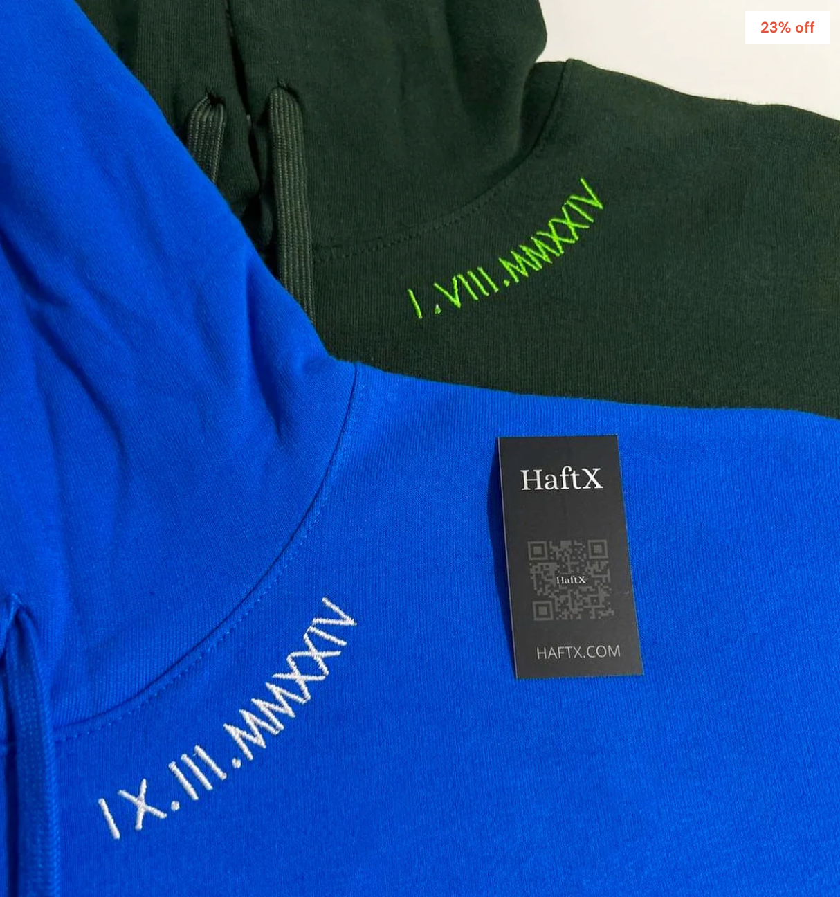 Personalizowana Bluza/Koszulka (unisex) z haftem Twojej daty w stylu rzymskim przy dekolcie