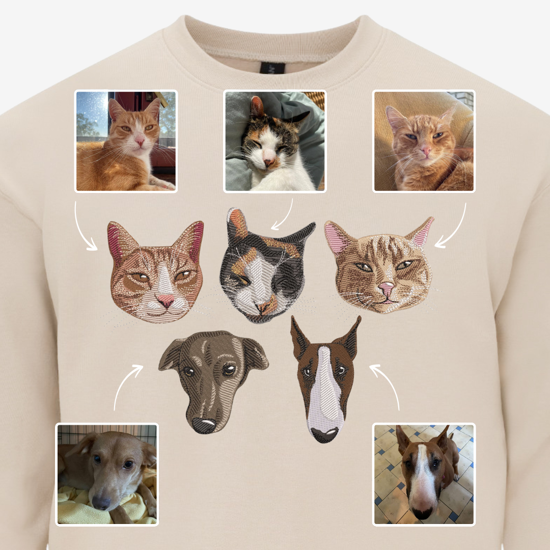 Personalizowana Bluza/Koszulka (unisex) z haftem ze zdjęcia – od jednego do pięciu pyszczków pupili