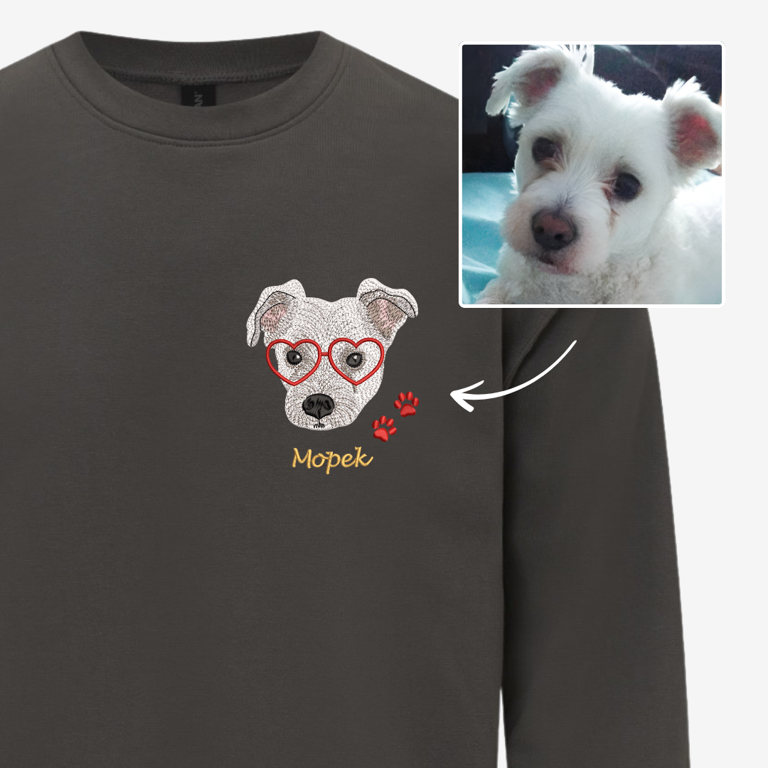 Personalizowana Bluza/Koszulka (unisex) z haftem ze zdjęcia pupila – pyszczek z okularami