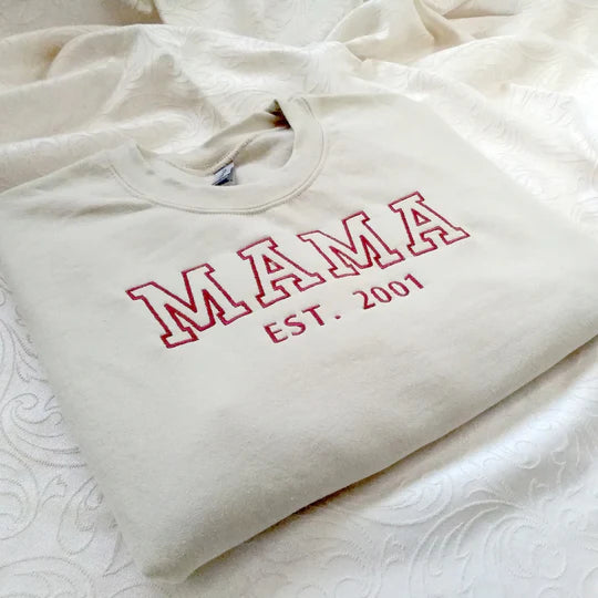 Personalizowana Bluza/Koszulka (unisex) z konturowym haftem «MAMA» i Twoją datą